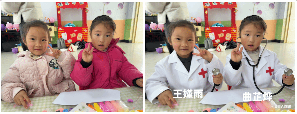 “AI绘梦想”环节:孩子们大胆说出自己的职业梦想,志愿者借助AI绘画工具,为每位孩子生成专属职业梦想画像,让宇航员、医生、老师等梦想变得可视可触。